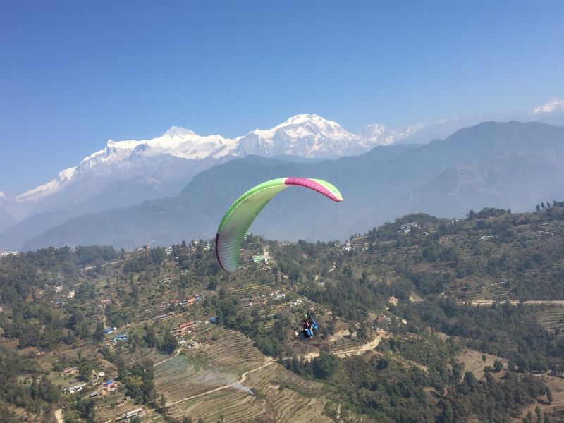 Experience the thrill of tandem paragliding in Pokhara, the adventure hub of Nepal. Soar from popular take-off points like Sarangkot, located around 2,000 meters (6,500 feet) above sea level, and enjoy breathtaking views of the Annapurna Himalayas, lush valleys, and the sparkling Phewa Lake below.